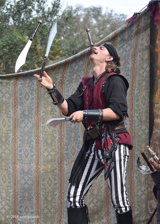 Cyrus has a BA in Theatre and an arsenal of bladed weapons. Put those together and you have some Cutting Edge Entertainment. Swords, Knives, Whips; easy to confuse Passion with Obsession in Cyrus' case, and rightly so. He's a man of skill, a man of danger, and some would say....a complete lunatic. Particularly in his mastery of the skill of Sword Swallowing.